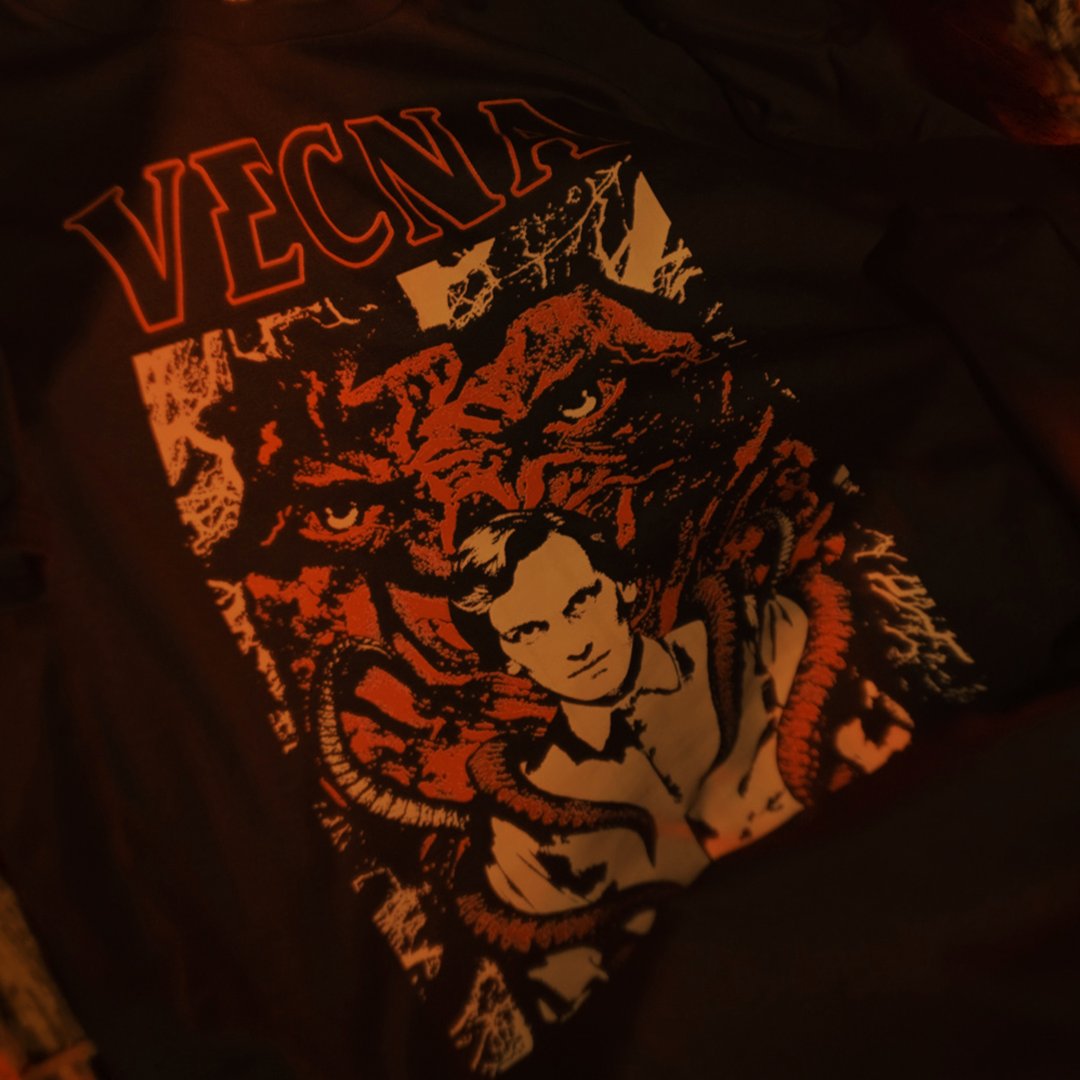 Fan-art T-shirt inspired by the highly anticipated Season 5 of Stranger Things. It features an original illustration of Vecna, accompanied by subtle references to the dark and unsettling world of Hawkins. Made from 100% cotton, this shirt is designed for fans seeking an exclusive piece with strong character and personality. It blends style, nostalgia, and mystery in a unique design that stands out. Available in various sizes.